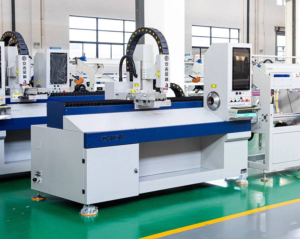 LPC80-B5-BF6000, otomatik yuvarlak kare metal tüp lazer kesicidir. İşçilerin tüpleri malzeme oluğuna taşıdığı ve ekipmanın bunları otomatik olarak işleyebildiği yarı otomatik bir raf ile donatılmıştır. Bu, yalnızca manuel emeğin gücünden yararlanarak tüp değiştirmeyi daha kolay hale getirmekle kalmaz, aynı zamanda 400 mm genişliğindeki malzeme oluğu ile üretim verimliliğini de artırır.